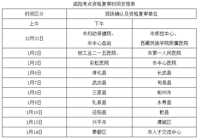 3.2020年衛(wèi)生專業(yè)技術(shù)資格考試咸陽考點資格復(fù)審時間安排表