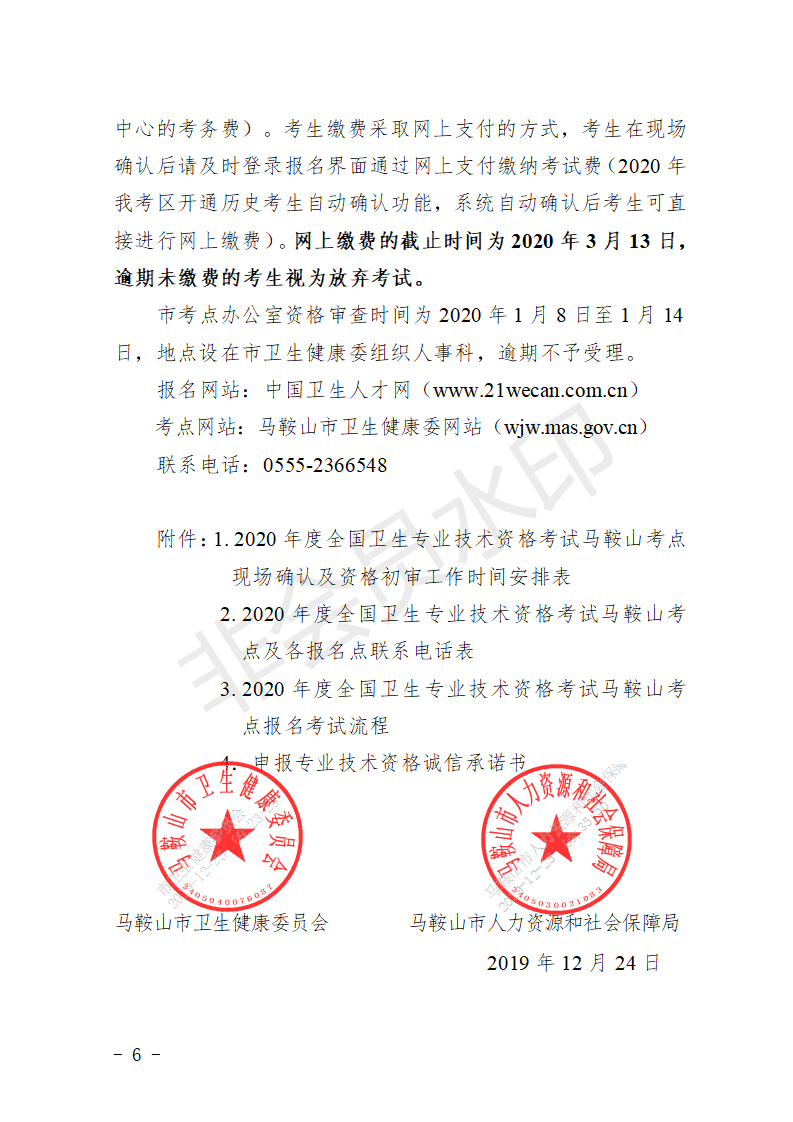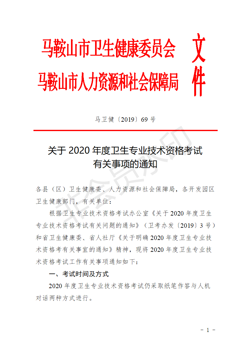 安徽馬鞍山2020年度衛(wèi)生專業(yè)技術(shù)資格考試有關(guān)事項(xiàng)的通知