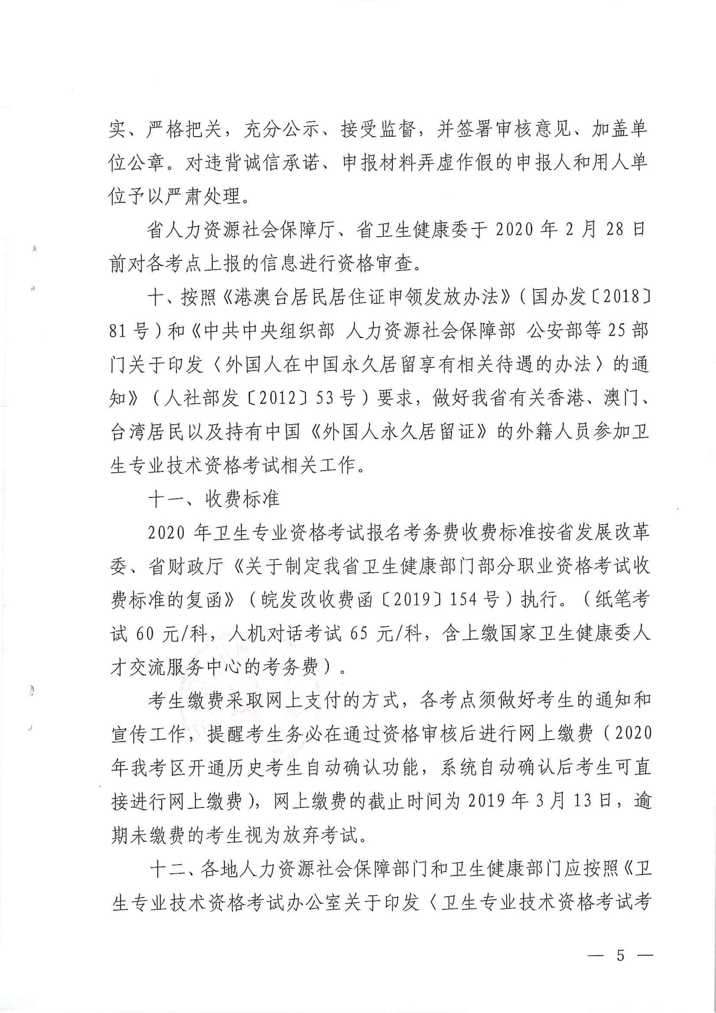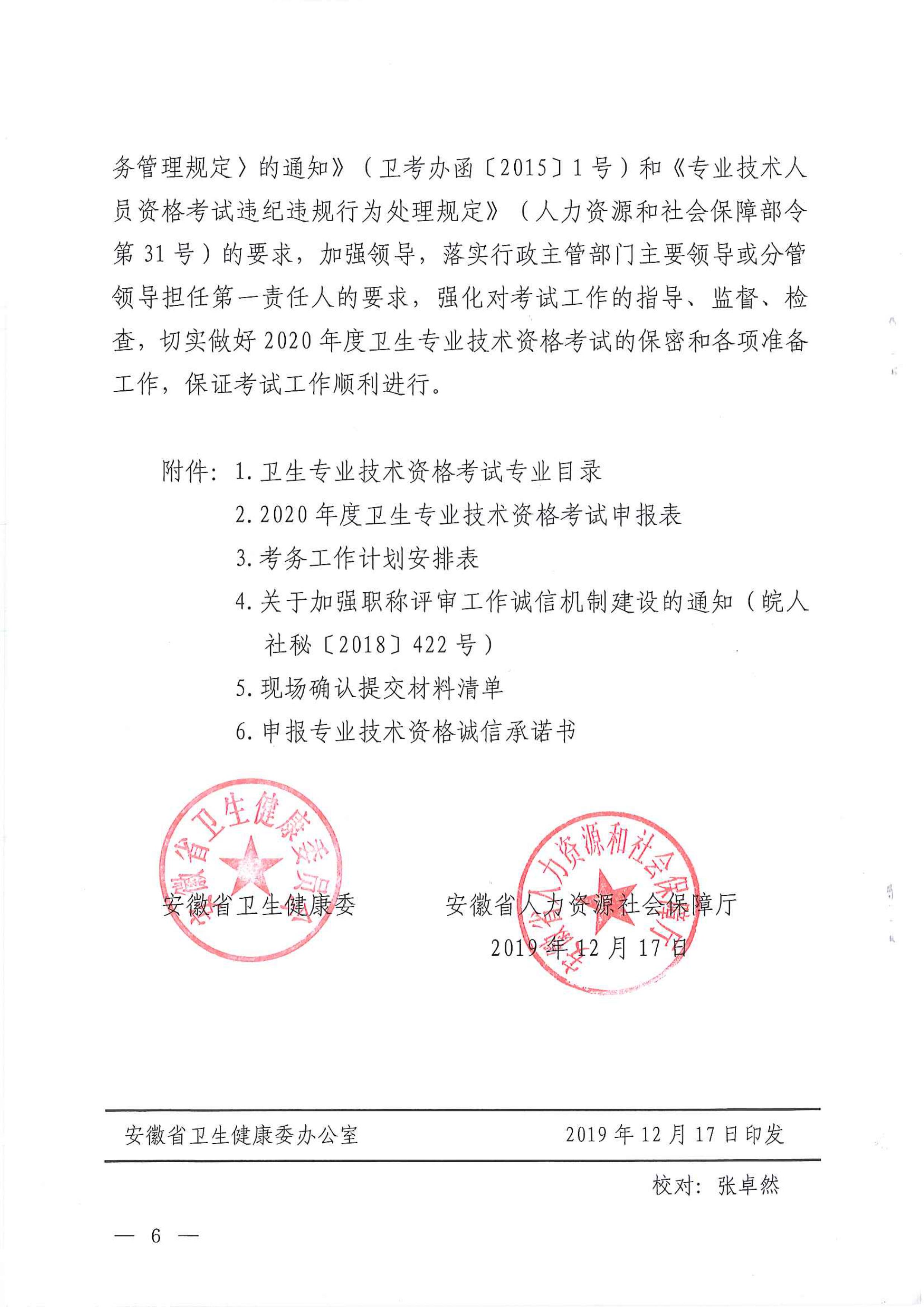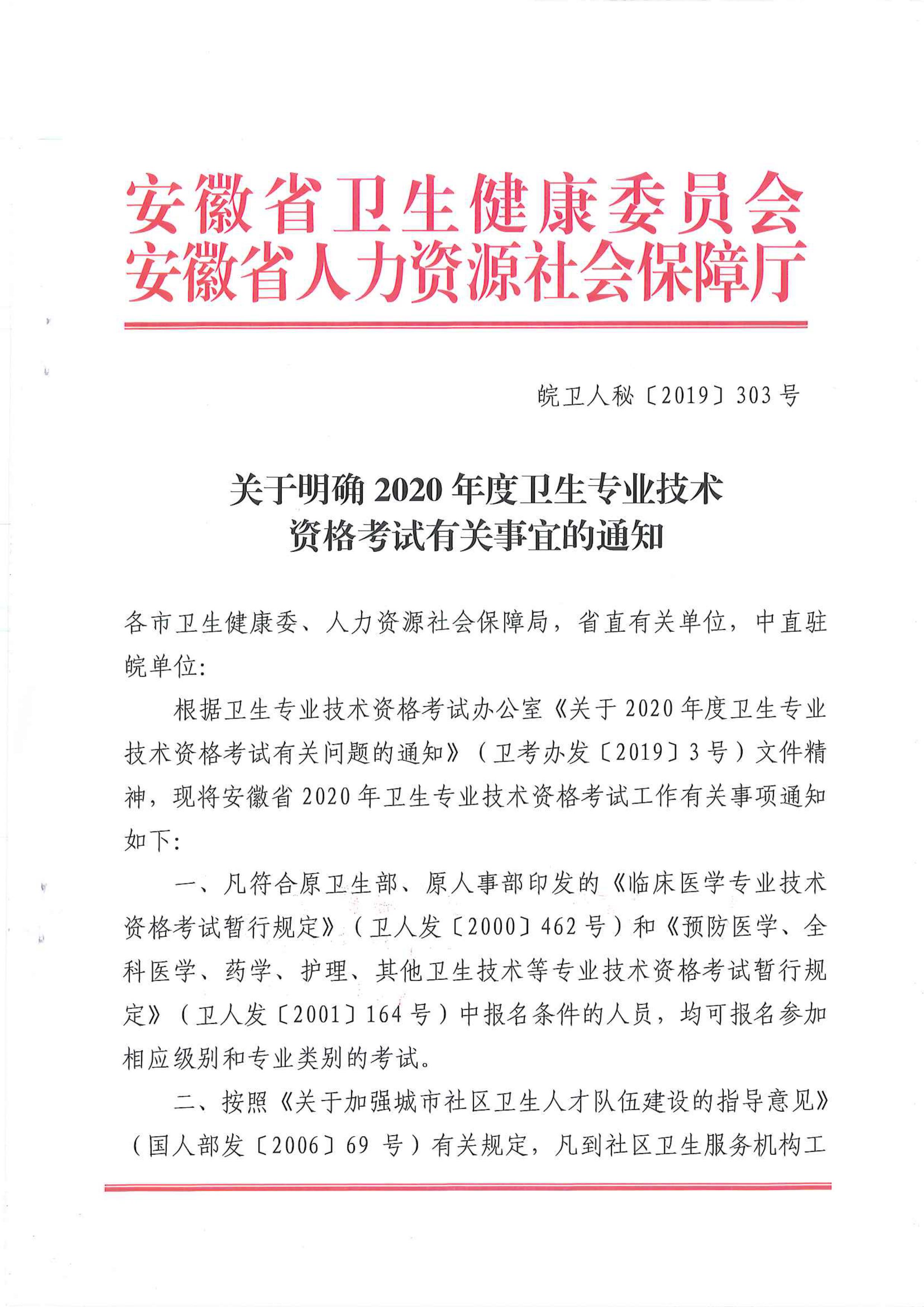 為做好2020年度衛(wèi)生專業(yè)技術(shù)資格考試工作,現(xiàn)將安徽省衛(wèi)生健康委員會、安徽省人力資源和社會保障廳《關于明確2020年度衛(wèi)生專業(yè)技術(shù)資格考試有關事宜的通知》(皖衛(wèi)人秘〔2019〕303號)轉(zhuǎn)發(fā)給你們,請各單位嚴格按照通知要求認真做好考試報名各項工作,報名材料于1月17日報市衛(wèi)生健康委人事科。