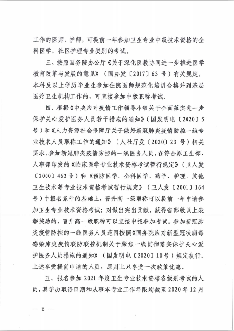 附件下載:關(guān)于明確2021年衛(wèi)生專(zhuān)業(yè)技術(shù)資格考試有關(guān)問(wèn)題的通知