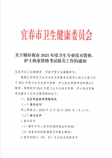 江西宜春關(guān)于做好2021年度衛(wèi)生專業(yè)技術(shù)資格考試報(bào)名工作的通知
