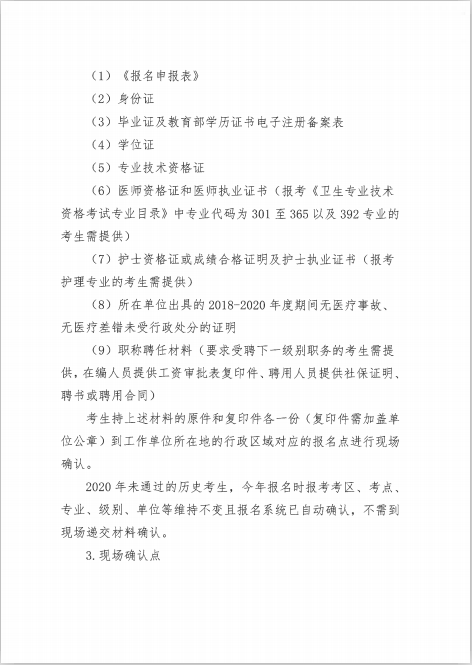 2021年全國(guó)衛(wèi)生資格考試現(xiàn)場(chǎng)確認(rèn)時(shí)間、地點(diǎn)、資料匯總