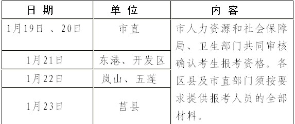 市直有關(guān)部門、各區(qū)縣人社局將本部門(區(qū)縣)報(bào)考考生材料匯總后,按規(guī)定時(shí)間集中到市人事考試中心(日照人力資源市場(chǎng)4樓,電話:0633-8777835)進(jìn)行審核確認(rèn)。審核確認(rèn)時(shí)間安排如下: