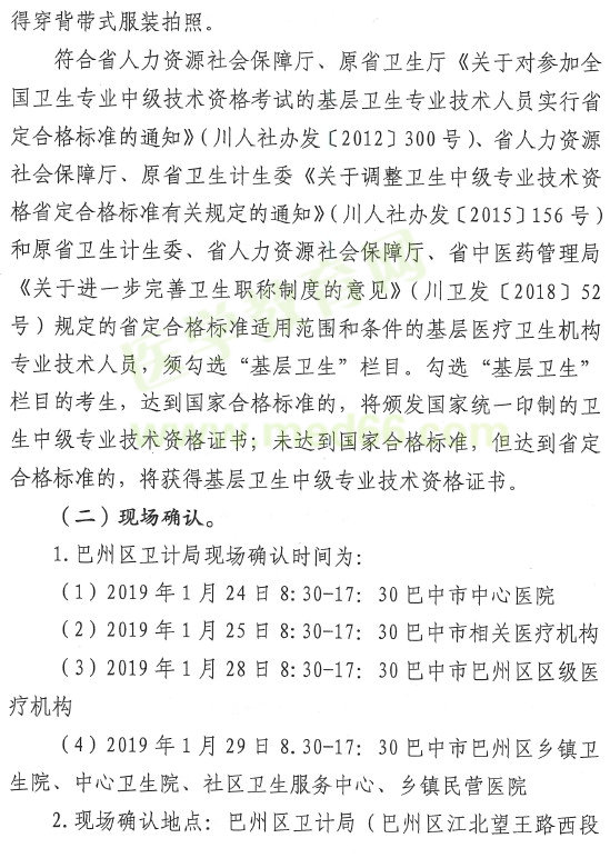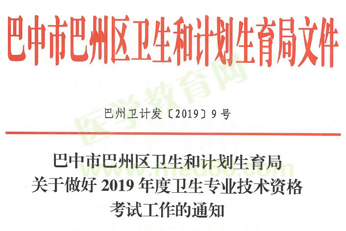 巴中市巴州區(qū)衛(wèi)生和計劃生育局關(guān)于做好2019年度衛(wèi)生專業(yè)技術(shù)資格考試工作的通知,通知內(nèi)容為巴州區(qū)2019年度衛(wèi)生專業(yè)技術(shù)資格考試報名工作,巴州區(qū)考生由單位于2019年1月24日至1月29日到巴州衛(wèi)計局進(jìn)行現(xiàn)場審核,相關(guān)內(nèi)容如下: