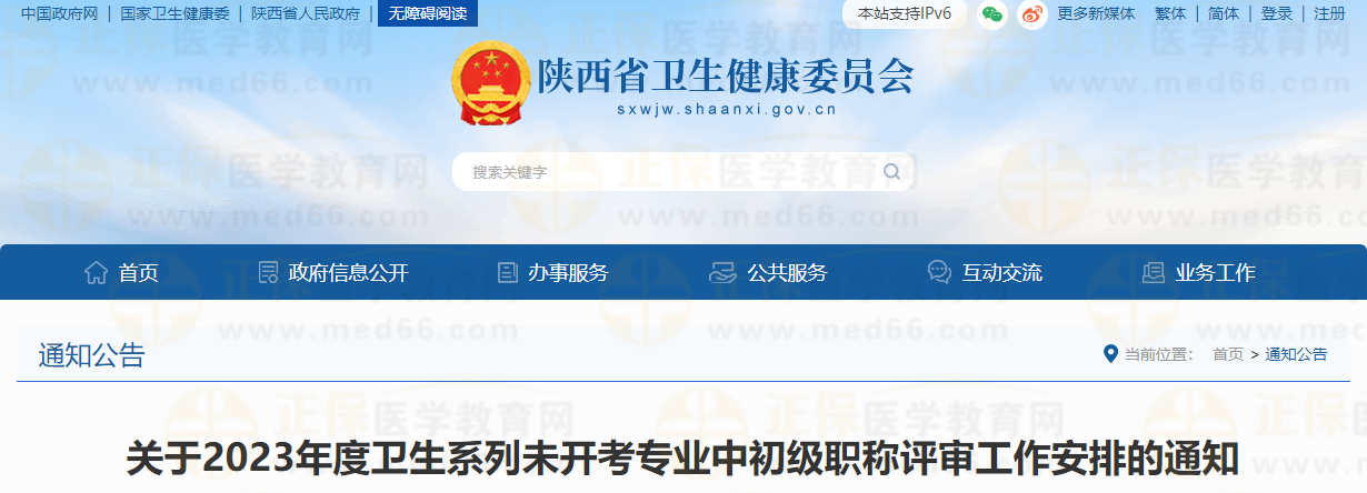 陜西省2023年度衛(wèi)生系列未開考專業(yè)中初級職稱評審工作安排的通知