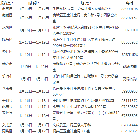 (三)報(bào)名確認(rèn)點(diǎn)。屬省、市醫(yī)療衛(wèi)生單位報(bào)考人員到本單位報(bào)名確認(rèn);屬市級民營醫(yī)院、計(jì)生機(jī)構(gòu)報(bào)考人員到溫州市衛(wèi)生和計(jì)劃生育委員會考試考務(wù)中心(飛霞橋路37號,安信大樓5樓502辦公室);屬縣(市、區(qū))醫(yī)療衛(wèi)生計(jì)生機(jī)構(gòu)到機(jī)構(gòu)所在地的縣(市、區(qū))衛(wèi)生計(jì)生局報(bào)名確認(rèn)??忌毘帧?017年度衛(wèi)生專業(yè)技術(shù)資格考試報(bào)名表》及相關(guān)的證件、材料進(jìn)行確認(rèn)。