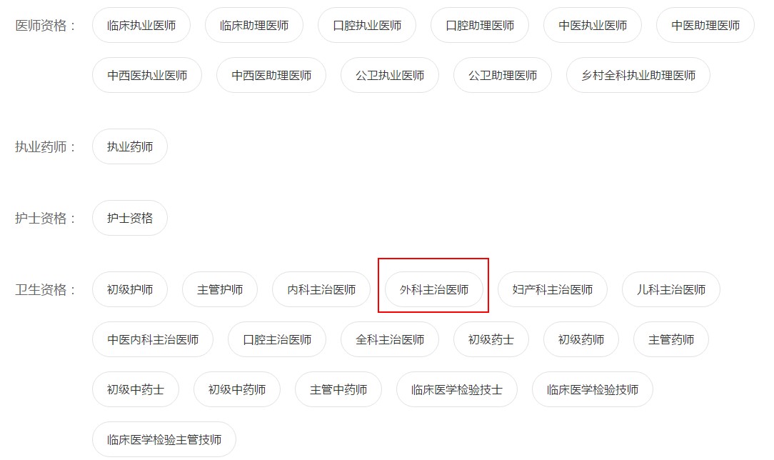 步驟一 :點擊下方圖片進入測評系統(tǒng),選擇自己的專業(yè)進入下一步(以外科主治為例)。