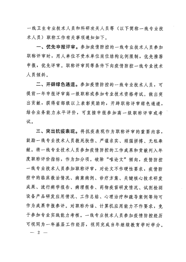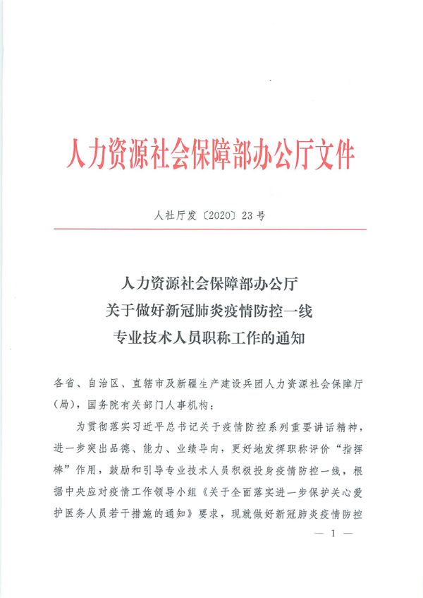 淮北市人力資源和社會保障廳發(fā)布關于做好新冠肺炎疫情防控一線專業(yè)技術人員職稱工作的通知,具體內容如下: