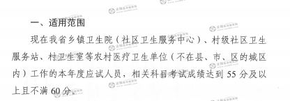 二、基層衛(wèi)生中級(jí)專業(yè)技術(shù)資格考試省定合格標(biāo)準(zhǔn)各科均為55分(各科目試卷滿分均為100分)。