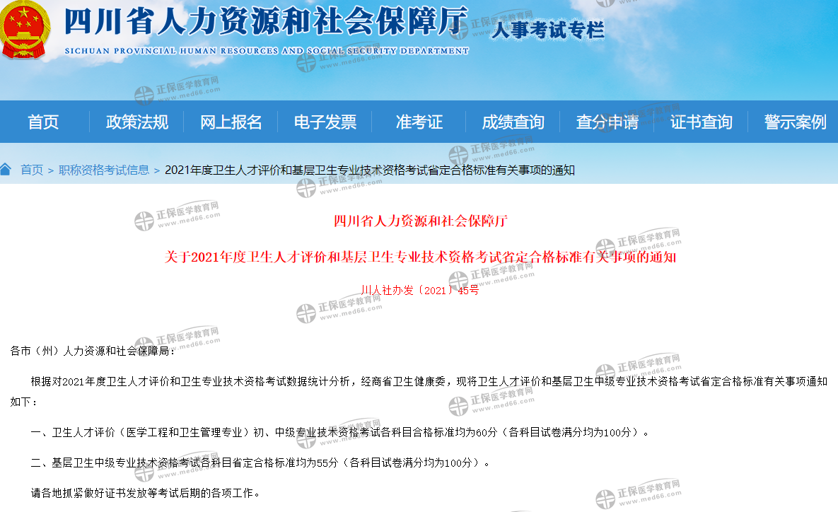 四川2021年基層衛(wèi)生資格考試省定合格標準公布啦!基層衛(wèi)生中級專業(yè)技術(shù)資格考試各科目省定合格標準均為55分!