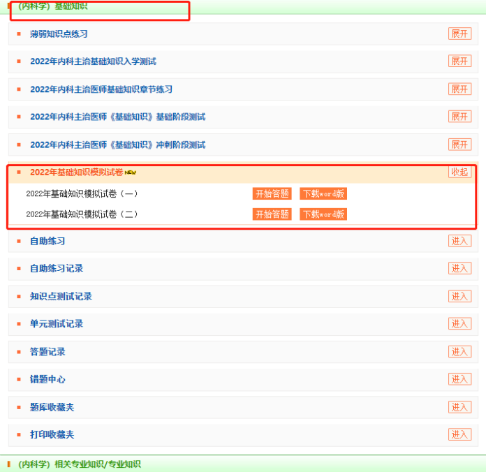 提示:下文以內(nèi)科主治醫(yī)師輔導(dǎo)課程為例,各專業(yè)模擬試卷做題入口就流程一樣。