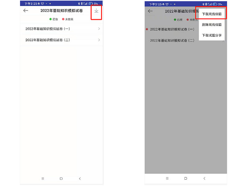 (4)點(diǎn)擊右上角下載箭頭,可下載模擬試卷,離線練習(xí)。