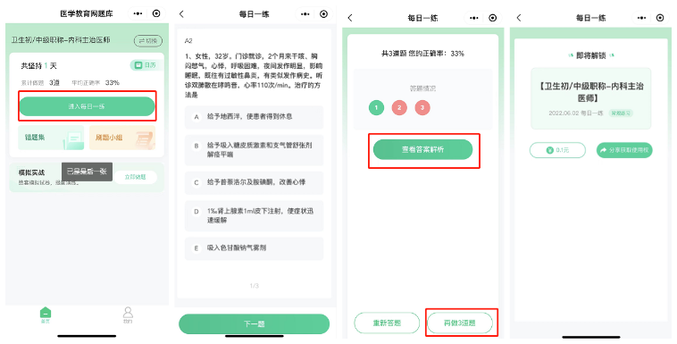 【正保醫(yī)學(xué)題庫】全新升級!每日一練、模擬實(shí)戰(zhàn)、錯(cuò)題集、刷題小組等題庫功能,幫助各位衛(wèi)生資格考生自檢自測,查缺補(bǔ)漏。心動不如行動,快去做題吧~