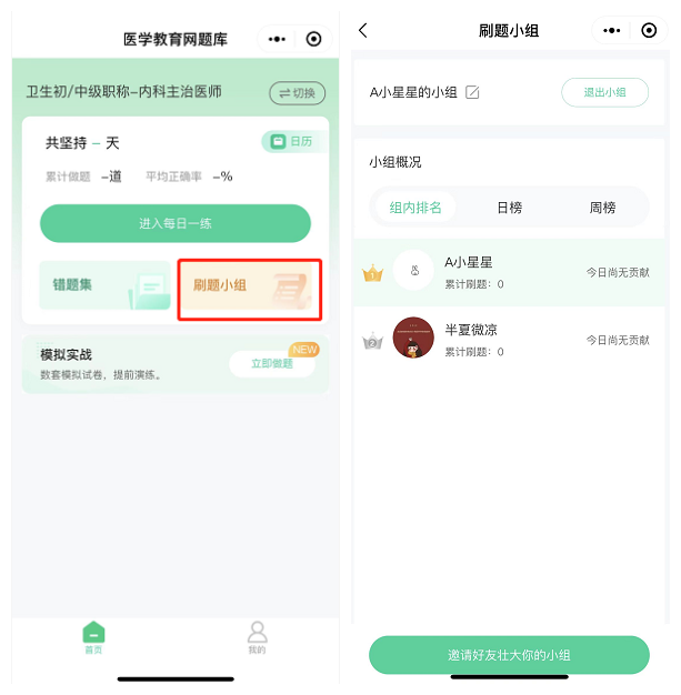一個(gè)人刷題太孤單?可以邀請你的小伙伴一起加入刷題小組,互相激勵,共同進(jìn)退,備考路上不再孤軍奮戰(zhàn)!