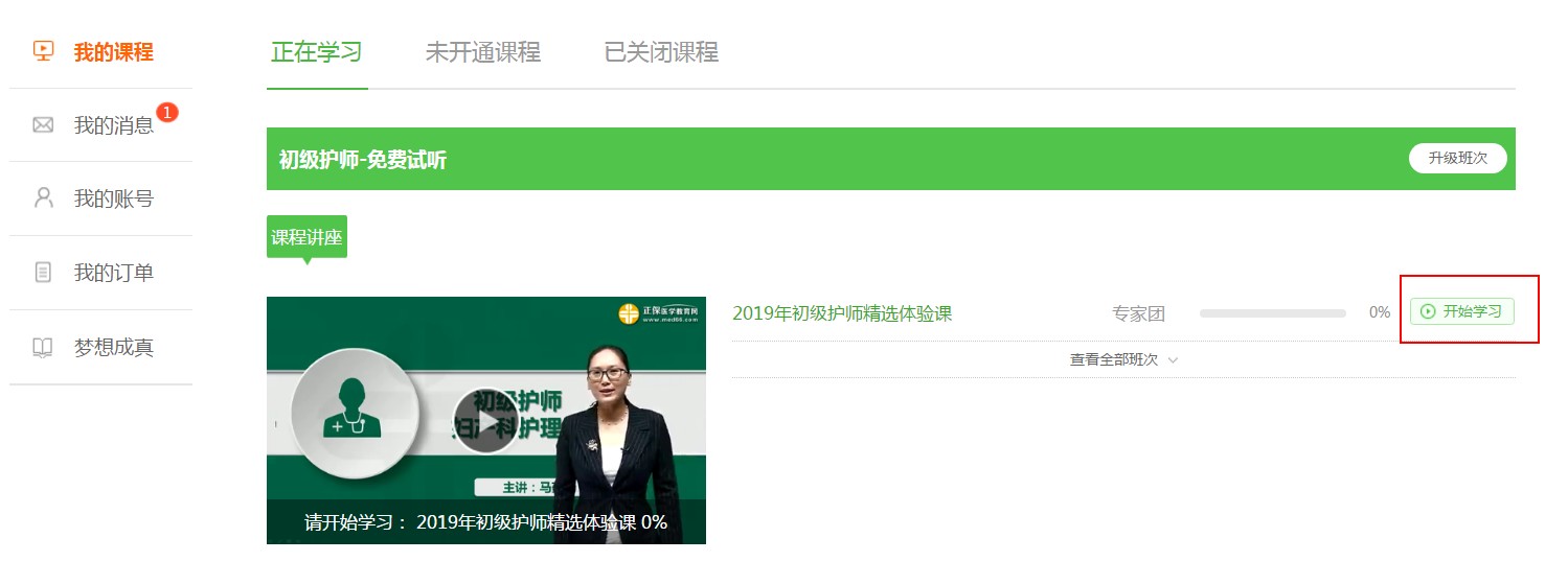 第四步:點(diǎn)擊開(kāi)始學(xué)習(xí),就可以按照課程目錄學(xué)習(xí)啦!