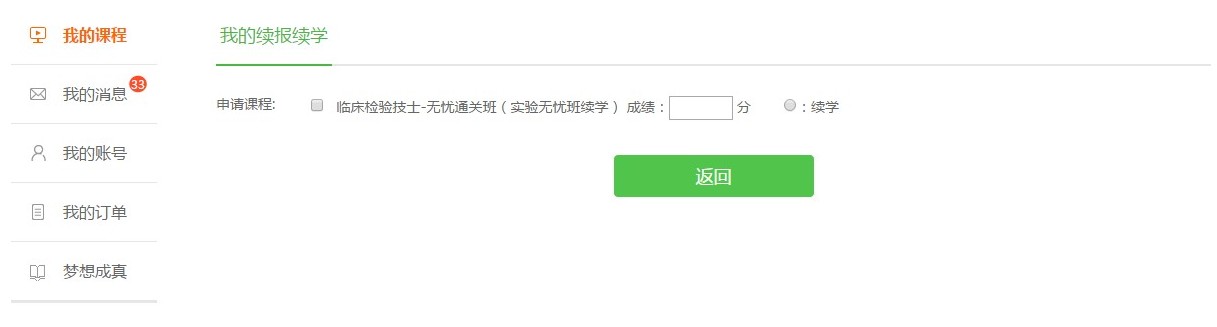 正值2019年衛(wèi)生資格考試成績(jī)查詢期間,購(gòu)買過網(wǎng)校2019年衛(wèi)生資格實(shí)驗(yàn)無憂班的所有學(xué)員,在分?jǐn)?shù)線公布并確認(rèn)自己沒有通過考試后,可以在“我的家”續(xù)學(xué)入口申請(qǐng)續(xù)學(xué)。