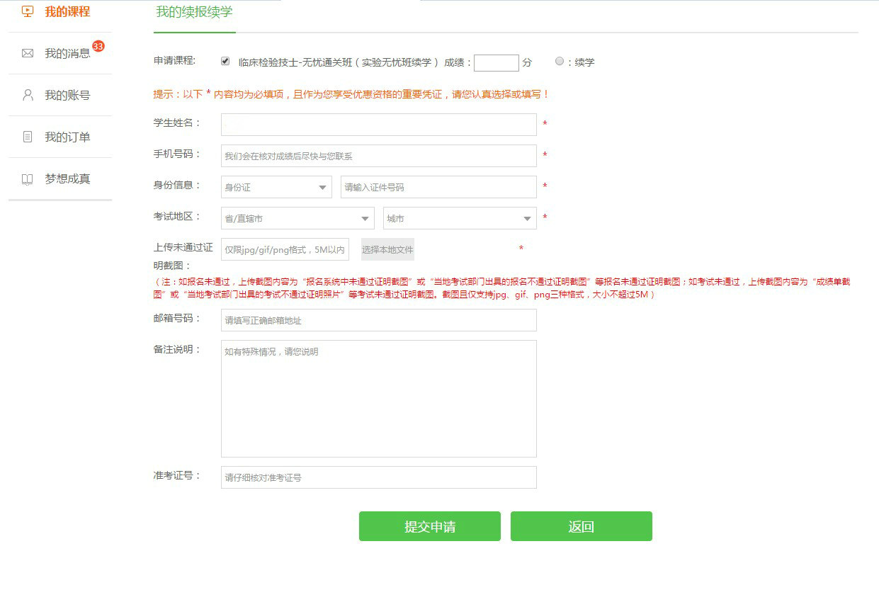 4、申請(qǐng)完成后,等待客服審核填寫信息真實(shí)性。審核通過后,即為大家開通續(xù)學(xué)課程。
