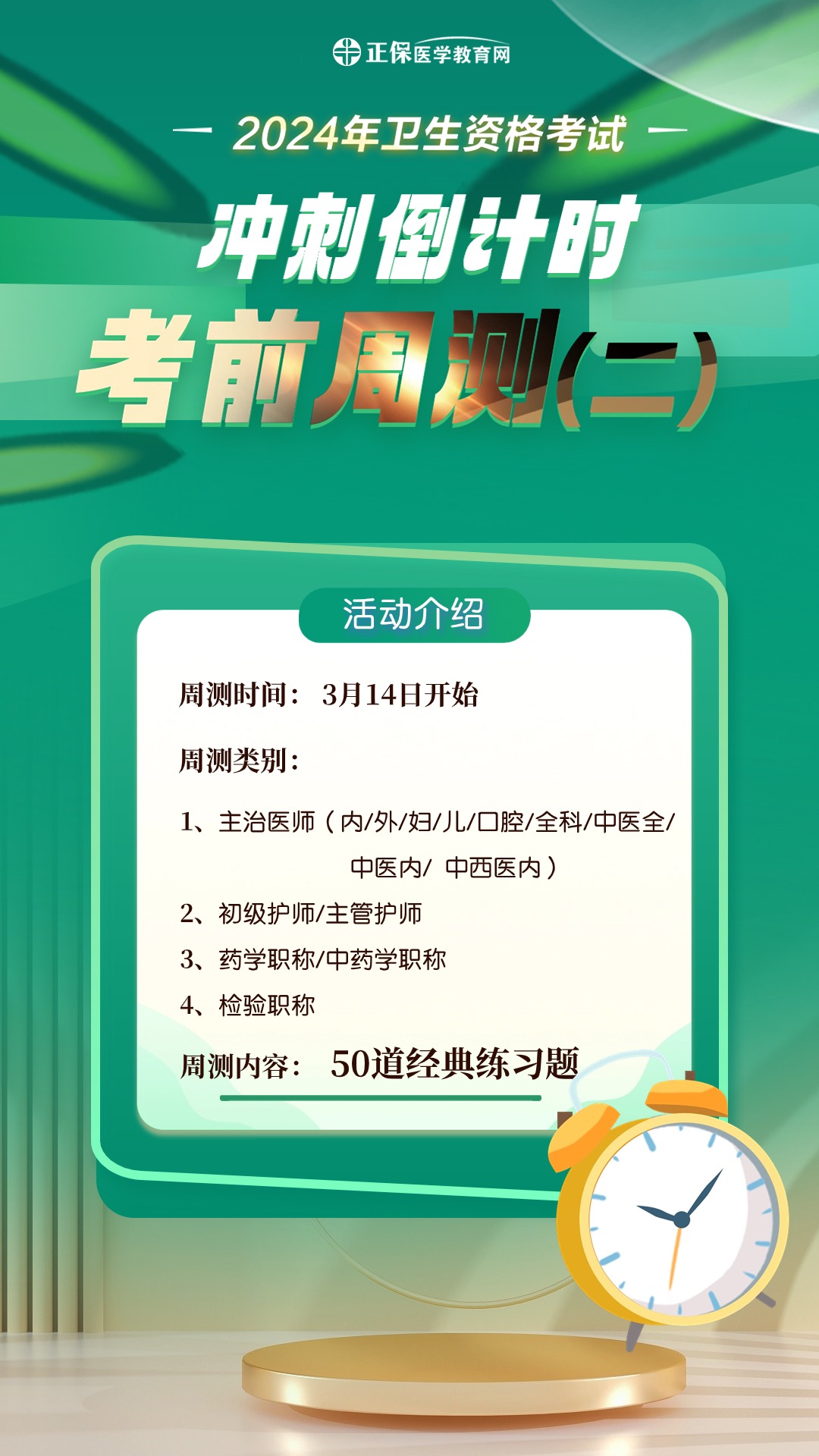 醫(yī)學(xué)教育網(wǎng)為大家啟動(dòng)“考前周測(cè)”活動(dòng),