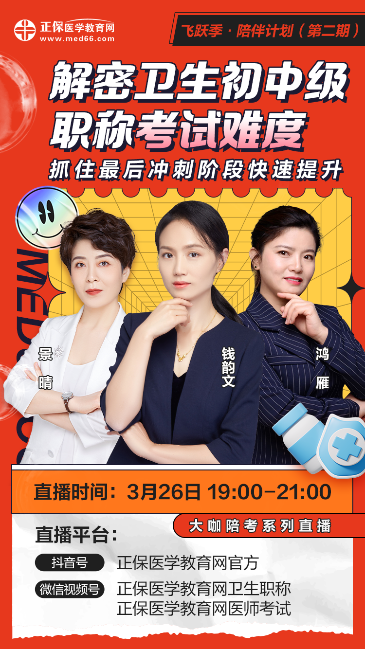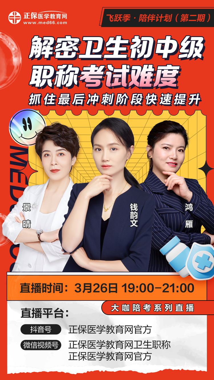 2024年衛(wèi)生初中級(jí)職稱考試已經(jīng)進(jìn)入沖刺階段,臨近考試你是否感到焦慮不知所措?是否感到復(fù)習(xí)效率低下?是否感到不能完全掌握考試情況?不用焦慮不安,醫(yī)學(xué)教育網(wǎng)3月26日開啟考前問診,錢韻文/景晴/鴻雁老師在線連麥暢談,解密衛(wèi)生初中級(jí)職稱考試難度,抓住最后沖刺階段快速提升!記得準(zhǔn)時(shí)來參加!