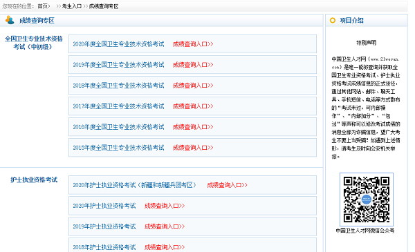 提前查分?各位考友需要明確中國衛(wèi)生人才網(wǎng)(www.21wecan.com)是唯一能夠查詢并獲取全國衛(wèi)生專業(yè)資格考試成績信息的正式途徑。衛(wèi)生資格考試一般是考后2個月才公布成績查詢入口,不可能存在提前查分的情況。如果怕錯過衛(wèi)生資格考試成績查詢入口開通,可以點擊進入成績查詢預約>
