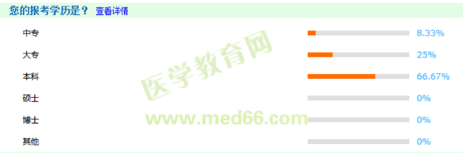 首先,為什么大家會覺得競爭越來越大?在醫(yī)學(xué)教育網(wǎng)開展的調(diào)查問卷中獲悉:目前,參加外科主治醫(yī)師考試的考友中學(xué)歷越來越高,比如在網(wǎng)校投票中,有占比66.67%的學(xué)員都是本科學(xué)歷。那對于中專、大專的考生,可能就存在一定的競爭壓力。