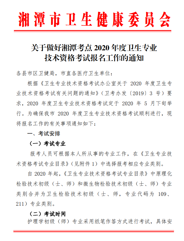 點(diǎn)擊查看附件: 湘潭市2020年衛(wèi)生資格考試報(bào)名工作的通知