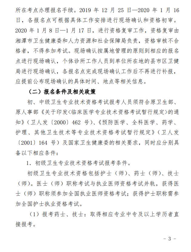 湖南省湘潭考點(diǎn)2020衛(wèi)生資格考試報(bào)名現(xiàn)場確認(rèn)時(shí)間安排