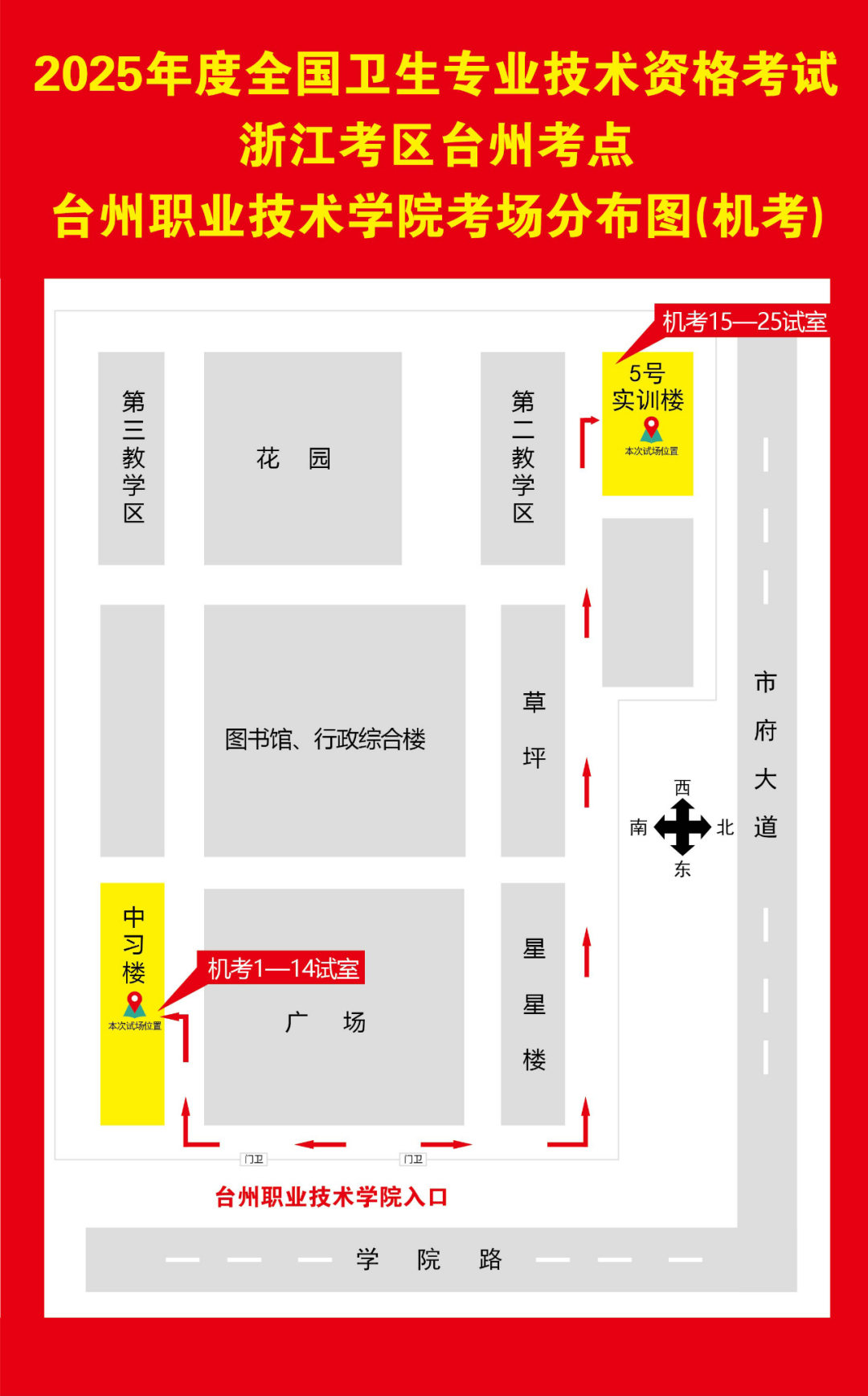 考場(chǎng)二 機(jī)考考場(chǎng)考場(chǎng)地址:臺(tái)州職業(yè)技術(shù)學(xué)院中習(xí)樓和5號(hào)實(shí)訓(xùn)樓(椒江區(qū)學(xué)院路788號(hào))公交站點(diǎn):高教園區(qū)東站(途經(jīng)公交車:121路,136路,156路)