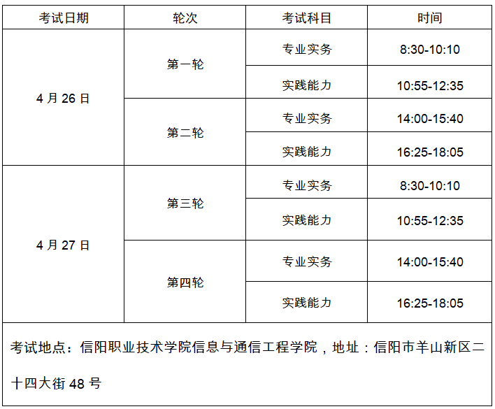 參考考生:2025年全國(guó)衛(wèi)生專業(yè)技術(shù)資格考試和護(hù)士執(zhí)業(yè)資格考試將于4月12、13、19、20、26、27日進(jìn)行。信陽考點(diǎn)衛(wèi)生專業(yè)技術(shù)資格考試設(shè)信陽職業(yè)技術(shù)學(xué)院信息與通信工程學(xué)院、信陽農(nóng)林學(xué)院管理學(xué)院2個(gè)機(jī)考考場(chǎng)和羊山新區(qū)第二小學(xué)、羊山新區(qū)第三小學(xué)2個(gè)紙筆考試考場(chǎng);護(hù)士執(zhí)業(yè)資格考試設(shè)信陽職業(yè)技術(shù)學(xué)院信息與通信工程學(xué)院1個(gè)機(jī)考考場(chǎng)。請(qǐng)您及時(shí)閱讀溫馨提示,確保順利參加信陽考點(diǎn)的考試。