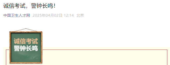 官方提示:2025衛(wèi)生資格即將開考,誠信考試,警鐘長鳴!