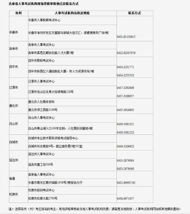附件:吉林省人事考試機構(gòu)現(xiàn)場資格審核地點及聯(lián)系方式