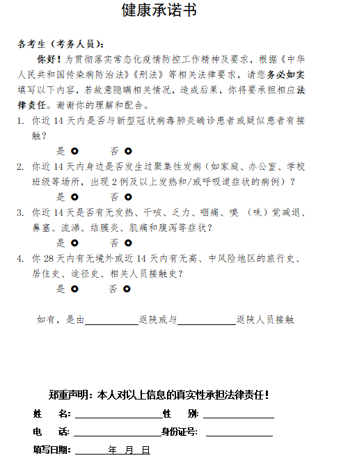 陜西2022年衛(wèi)生資格考試考生健康承諾書