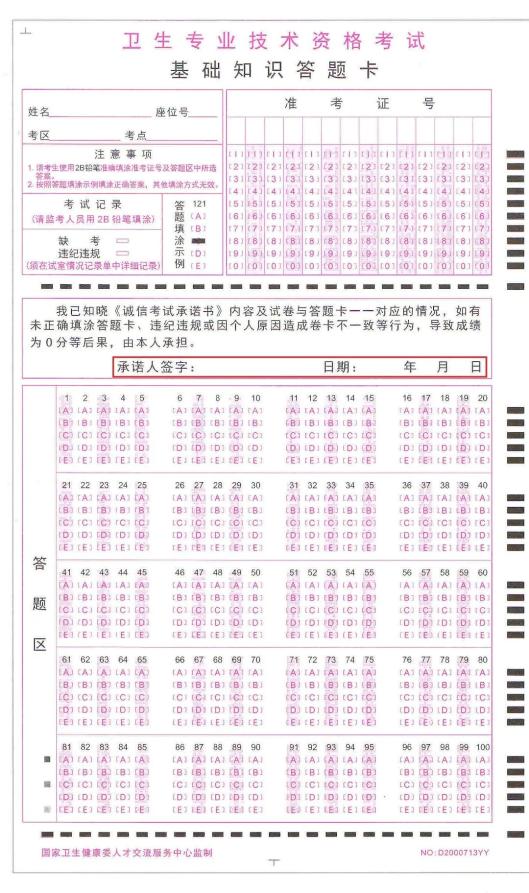 衛(wèi)生專業(yè)技術(shù)資格考試護(hù)理學(xué)初級(師)專業(yè)采用“卷卡合一”方式