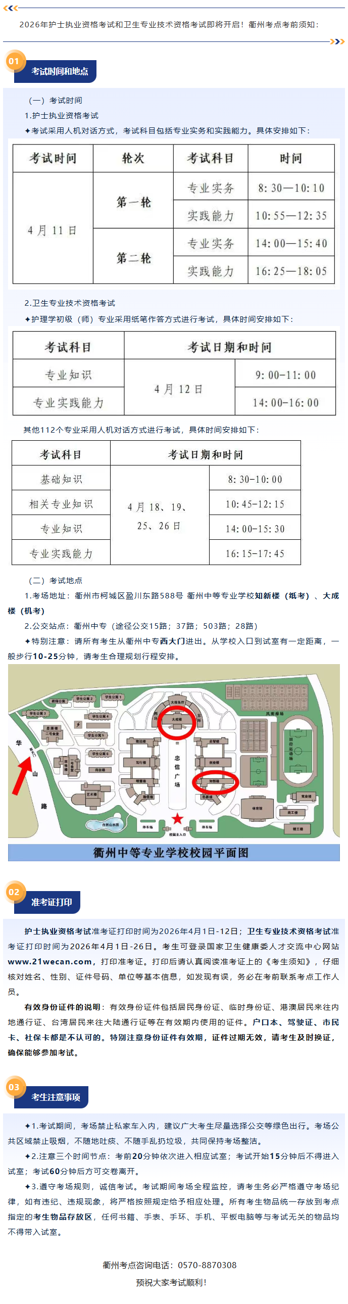 2026年衢州考點護士執(zhí)業(yè)資格考試和衛(wèi)生專業(yè)技術(shù)資格考試考前須知