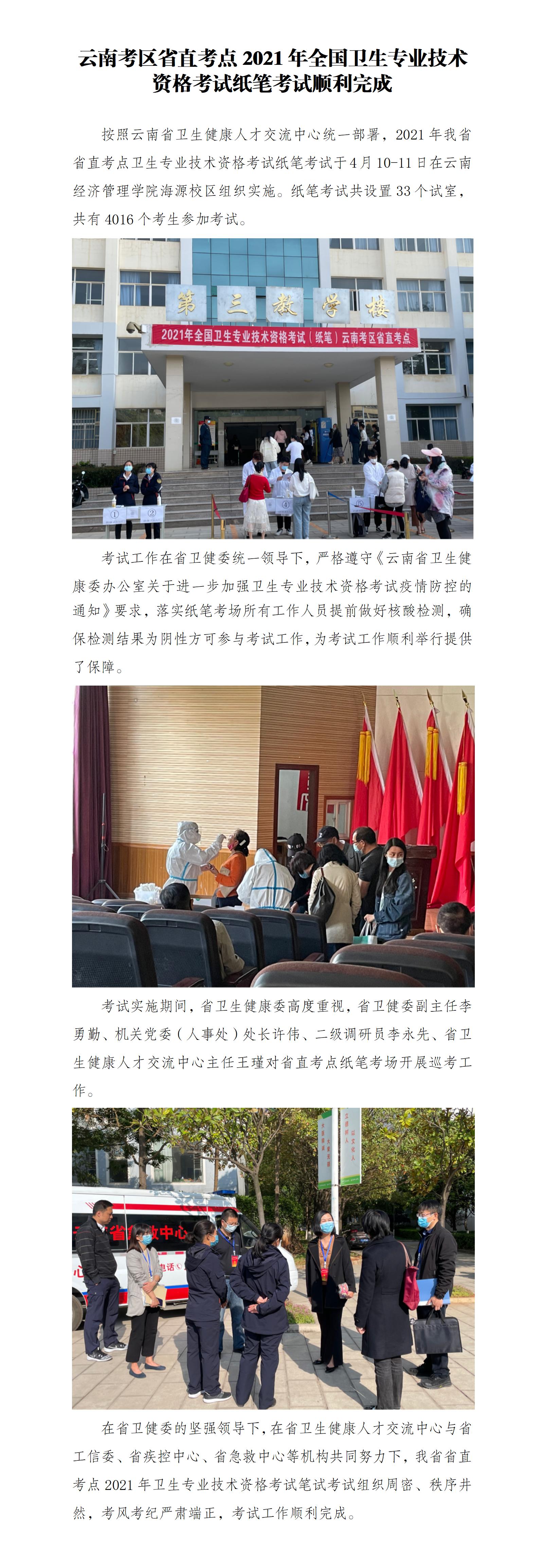 云南省直考點2021年衛(wèi)生專業(yè)技術資格考試紙筆考試順利完成