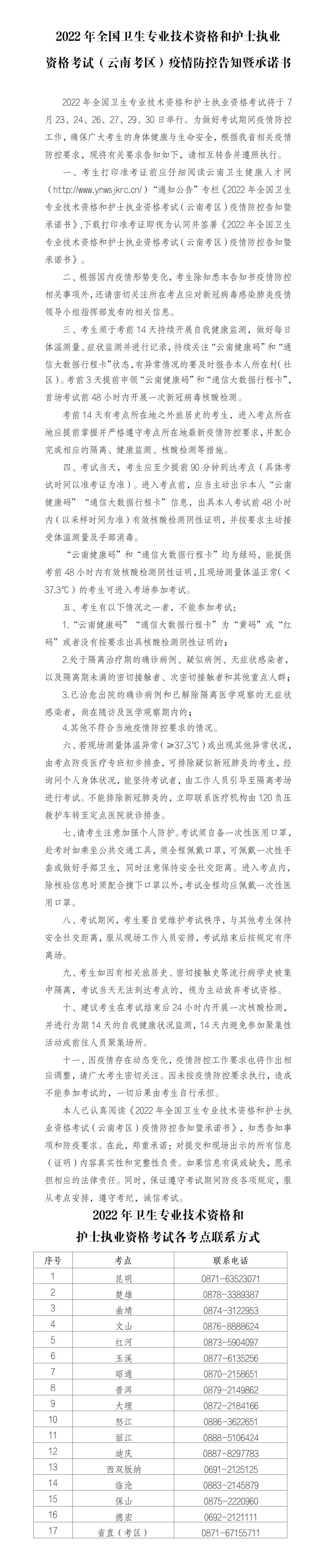 云南衛(wèi)生健康人才網發(fā)布2022年全國衛(wèi)生專業(yè)技術資格和護士執(zhí)業(yè)資格考試(云南考區(qū))疫情防控告知暨承諾書,醫(yī)學教育網整理具體內容如下: