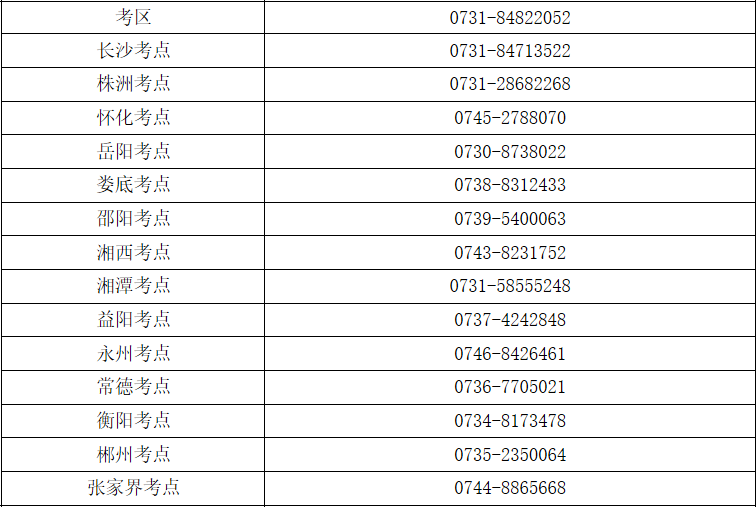 湖南考區(qū)各考點(diǎn)咨詢電話(護(hù)士執(zhí)業(yè)資格考試和衛(wèi)生專業(yè)技術(shù)資格考試)