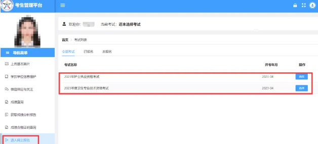 點擊左側(cè)導(dǎo)航欄【進入網(wǎng)上報名】,選擇考試項目。