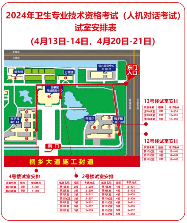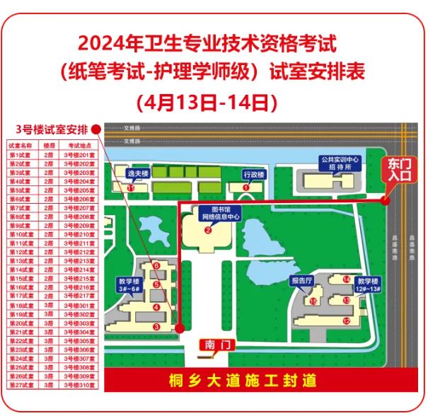 ⒈因桐鄉(xiāng)大道道路施工封道,本次考試嘉興職業(yè)技術(shù)學院僅開放東大門(嘉興市南湖區(qū)城南街道昌盛南路1123號)供考生出入,嘉興市桐鄉(xiāng)大道547號南大門關(guān)閉;學校不允許考生車輛進入校園,校門口周邊道路禁止停車。
