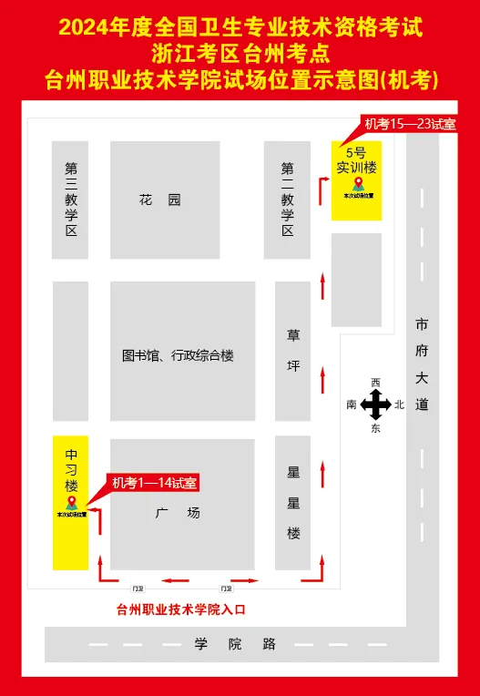 考場地址:臺州職業(yè)技術(shù)學(xué)院中習(xí)樓和5號實(shí)訓(xùn)樓(椒江區(qū)學(xué)院路788號)