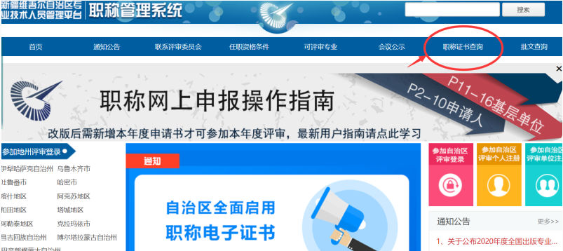 2.點(diǎn)擊標(biāo)題欄右側(cè)第二欄【職稱證書(shū)查詢】,進(jìn)入證書(shū)查詢頁(yè)面: