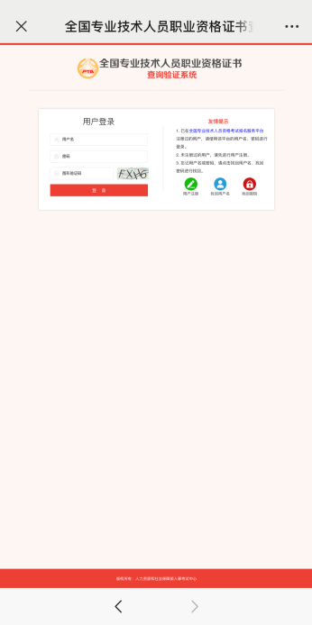 3.為什么掃描二維碼后,顯示結(jié)果為“專業(yè)技術(shù)人員職業(yè)資格證書查詢驗(yàn)證系統(tǒng)”登錄頁面?