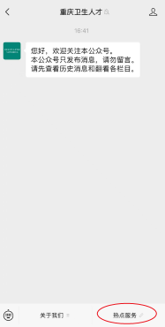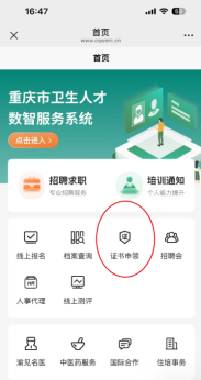 微信搜索“重慶衛(wèi)生人才”服務號,點擊【熱點服務-證書申領】