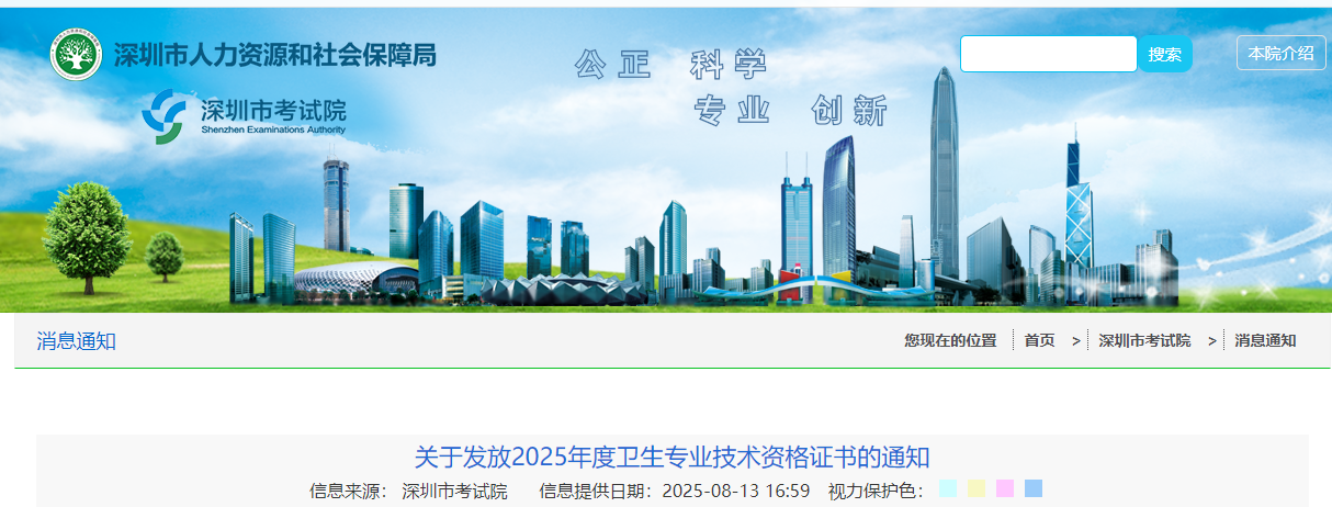 深圳關(guān)于發(fā)放2025年度衛(wèi)生專業(yè)技術(shù)資格證書的通知