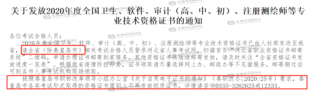 注意!河北秦皇島不再發(fā)放衛(wèi)生資格紙質(zhì)證書!