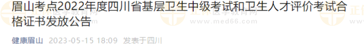 眉山考點2022年基層衛(wèi)生中級考試合格證書發(fā)放公告