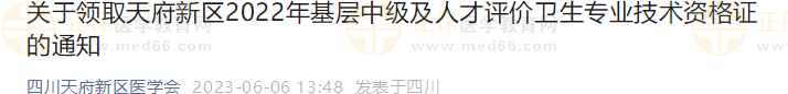 四川天府新區(qū)2022年基層衛(wèi)生中級考試資格證的領(lǐng)取通知