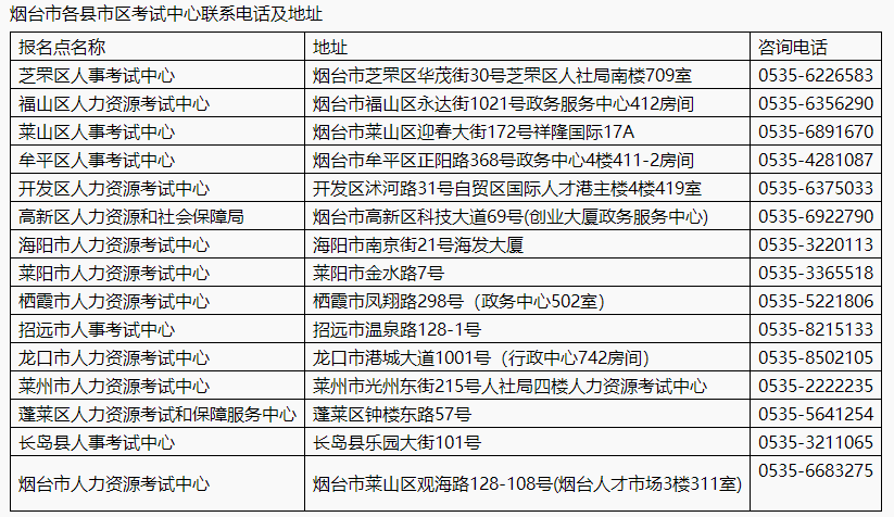 各縣市區(qū)人事考試中心、市直及駐煙有關(guān)單位: