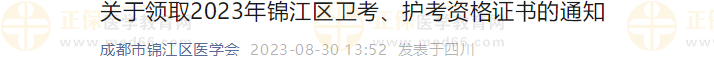 成都市錦江區(qū)關(guān)于領(lǐng)取2023年衛(wèi)生專業(yè)技術(shù)資格考試證書的通知