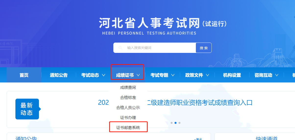 河北人事考試網(wǎng)-成績證書-證書郵寄系統(tǒng)-掃碼查詢證書-郵寄證書